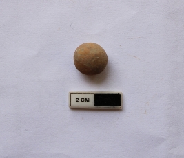 | Description / विवरण | A terracotta sling ball which is spherical in shape. It is dull red in color and damaged in condition. |