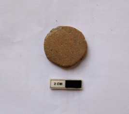 | Description / विवरण | A terracotta hopscotch in a circular shape. It is red in color and damaged in condition. |