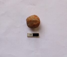 | Description / विवरण | A terracotta sling ball which is spherical in shape. It is dull red in color and damaged in condition. |