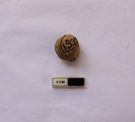 | Description / विवरण | A terracotta sling ball which is spherical in shape. It is dull red in color and damaged in condition. |