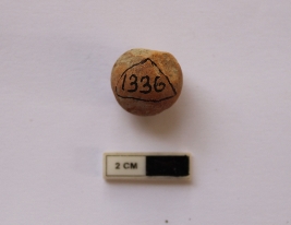 | Description / विवरण | A terracotta sling ball which is spherical in shape. It is dull red in color and damaged in condition. |