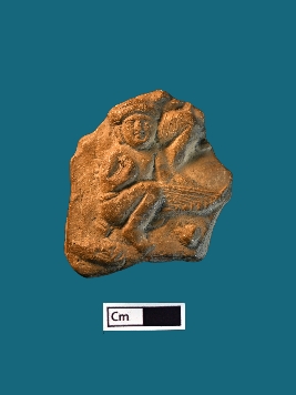 | Description / विवरण | The broken terracotta plaque depicts a seated winged male figurine adorned with headgear. His face is fully visible, while his leg up to the knee is covered with folded drapery. The object shows the figurine seated facing right, revealing only the right side of his body. Additionally, the plaque is partly decorated. |