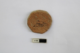 | Description / विवरण | A terracotta hopscotch in a circular shape. It is red in color and damaged in condition. |
