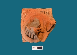 | Description / विवरण | A terracotta plaque depicts the right foot of a human, set within a border likely representing a sandal. Aside from this, no other elements are portrayed. |