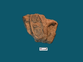 | Description / विवरण | The terracotta plaque appears fragmented, revealing only a portion of its original design. An almost rectangular section is depicted, featuring circular decorations intricately crafted onto its surface. Attached to this rectangular portion is a tubular mouth, suggesting a functional element of the object. |