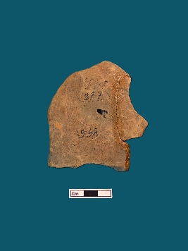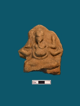 | Description / विवरण | The fragmentary terracotta plaque depicts the figure of a seated Ganesha. Despite its fragmented state, the artifact showcases the distinctive features of Ganesha, including the four arms characteristics of the deity. Regrettably, the right two hands are broken from the middle, yet both left hands remain intact. Cast in a vibrant red colour. |