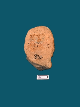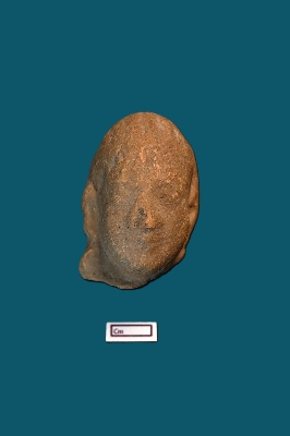 | Description / विवरण | A terracotta human face is red in colour. The object is partly fragmented. Face is completely eroded. Eyes, nose and lips are partly visible. |