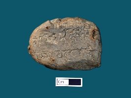 | Description / विवरण | A terracotta seal bearing a two line inscription in Proto-Bengali script on obverse. On the reverse side nothing can be identified due to damage. |