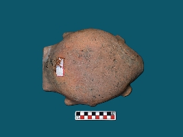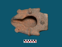 | Description / विवरण | Terracotta lamp with smooth surface. Wick is intact and slips treatment given in red colour. It has straight flatted and thick rim. The upper portion of the lamp is decorated with beaded design. |