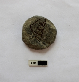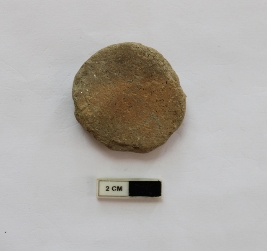 | Description / विवरण | A terracotta hopscotch in a circular shape. It is dull red in color and damaged in condition. |