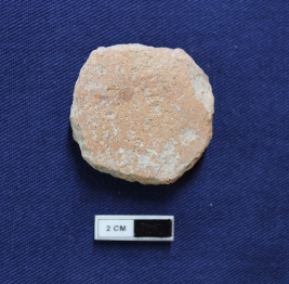 | Description / विवरण | A terracotta hopscotch in a circular shape. It is red in color and damaged in condition. |