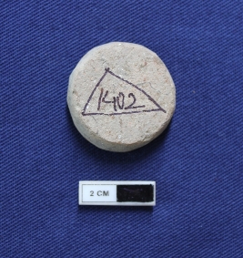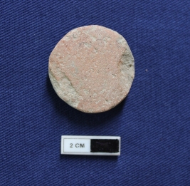 | Description / विवरण | A terracotta hopscotch in a circular shape. It is red in color and damaged in condition. |