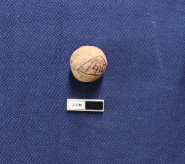 | Description / विवरण | A terracotta sling ball which is spherical in shape. It is bright red in color and damaged in condition. |