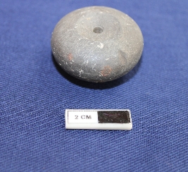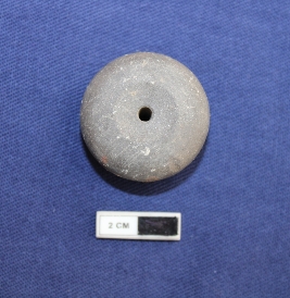 | Description / विवरण | A terracotta bead in arecanut shape. It is gray in color and damaged in condition. |