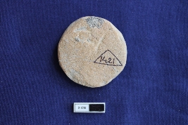 | Description / विवरण | A terracotta hopscotch in a circular shape. It is red in color and damaged in condition. |