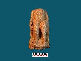 | Description / विवरण | A terracotta plaque displays a headless male figurine, with his right hand broken from the wrist. His left hand rests on his thigh as he stands upon a pedestal. The figure s belly is slightly protruding. |