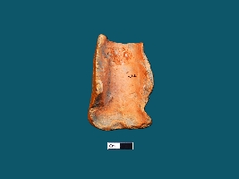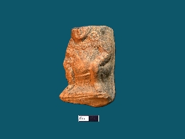 | Description / विवरण | A terracotta plaque presents a seated human figurine, adorned with intricate ornamentation. Despite being broken from the upper part of the nose, the figurine exudes elegance. It wears a decorated necklace and circular earrings, while a bracelet adorns its left hand. The hands are gracefully rested on bended knees. The figure is seated on a tool object embellished with a beaded design. Probably this is a figurine of Kubera. |
