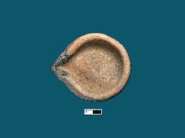 | Description / विवरण | Terracotta lamp with intact wick and slips treatment given in red colour. It has straight and thick rim. The surface of the object is smooth. It has partly rounded base. |