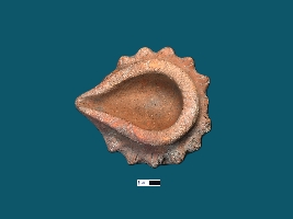| Description / विवरण | The terracotta lamp boasts an intact wick and a design that accentuates a straight, thick rim embellished with a jagged pattern along its outer edge, complemented by incised designs on its surface. The lamp s base exhibits a near-perfectly rounded form. |