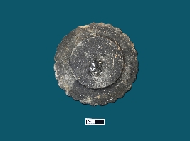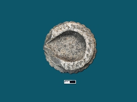 | Description / विवरण | The terracotta lamp boasts broken wick and a design that accentuates a straight and thick rim complemented by incised designs on its surface. The lamp s base exhibits a flatted shape. |
