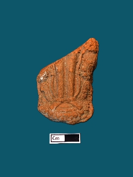 | Description / विवरण | This terracotta plaque depicts the legs of a human figurine standing upon a lotus pedestal, adorned with decorated anklets. The scene includes intricate flower motifs, all rendered in a smooth surface and vibrant red colour. |