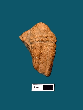 | Description / विवरण | This terracotta plaque portrays a human figurine from the belly to the upper ankle, featuring a wrist belt adorned with a beaded design. The depiction suggests a slightly flabby belly and folded legs adorned with decorated drapery. |
