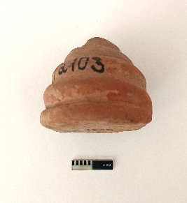| Description / विवरण | It is a terracotta Votive Stupa with spiral ornamentation on its outside. There are five spiral tires, and the base is flat. |
