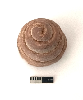 | Description / विवरण | It is a terracotta votive stupa with spiral ornamentation on its outside. There are five spiral tires, the base is flat and fabric impression can be seen on it. |