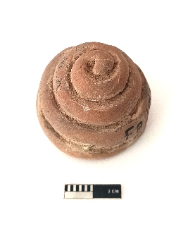 | Description / विवरण | It is a terracotta votive stupa with spiral ornamentation on its exterior. There are five spiral tiers, and the base is flat. |