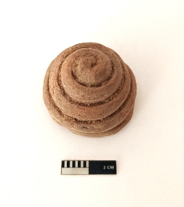 | Description / विवरण | It is a terracotta votive stupa with spiral ornamentation on its exterior. There are five spiral tiers, and the base is flat. |