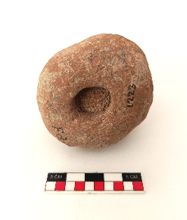| Description / विवरण | It is a votive stupa of backed clay. The base has the shape of a bowl. The drum is in cylindrical form. There is a small tablet inserted at the bottom a small tablet with Buddhist creed in six lines. |
