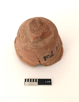 | Description / विवरण | It is a votive stupa of backed clay, The bottom is broken, revealing the small tablet bearing Buddhist creed in 5 lines. The drum is in cylindrical form. |