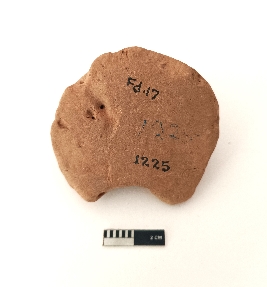 | Description / विवरण | It is votive stupa of backed clay, with a flat circular bottom. The body is damaged. |