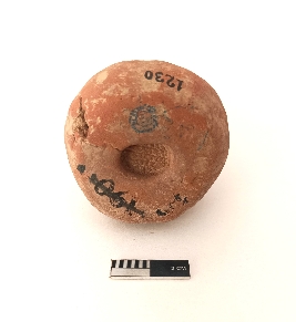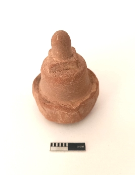 | Description / विवरण | It is miniature stupa of backed clay, with a flat circular bottom. The base has the shape of a bowl. The drum is in cylindrical form. Inside the stupa near the bottom is inserted a small tablet with Buddhist creed in five lines. |