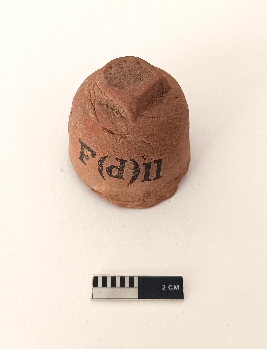 | Description / विवरण | It is miniature stupa of backed clay. The base is broken. The drum is in cylindrical form. Inside the stupa near the bottom is inserted a small tablet with Buddhist creed in five lines. |