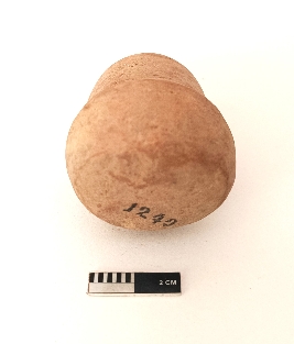 | Description / विवरण | It is miniature stupa of backed clay, with a flat circular bottom. The base has the shape of a bowl. The drum is of the usual cylindrical form. |