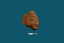 | Description / विवरण | The terracotta plaque showcases the face of a human, with only half of it intact while the rest is broken. Only half of the lip and the right eye are visible. Additionally, a circular earring can be seen. |