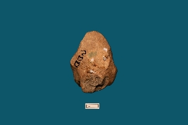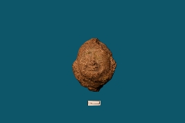 | Description / विवरण | A terracotta head with its face eroded over time. Despite erosion, fragments of the nose, eyes, and lips are partly visible. The object, adorned in red hues. |