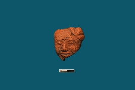 | Description / विवरण | A fragmented terracotta head reveal itself, bearing a distinct knot on its left side. The eyes, nose, and broad lips remain visible. Additionally, two cut marks are evident. |