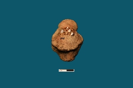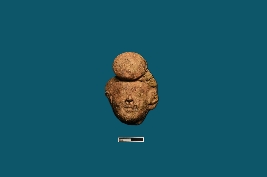 | Description / विवरण | A fragmented terracotta human head, crowned with a round and bulbous knot on top. Its face, nearly eroded, leaves only the nose visible. On one side, the left ear is intact while the right one lies broken. |