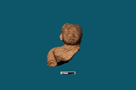 | Description / विवरण | A fragmented terracotta figurine revealing only parts of it. The face and a few adjoining parts to the chest remain visible. While the eyes and nose are partly visible, the right ear stands intact. The rest of her figure remains veiled. |