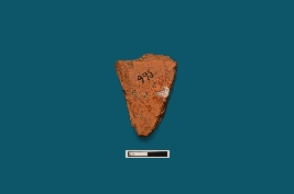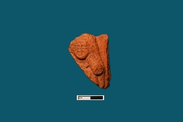| Description / विवरण | A female figurine is depicted on this terracotta plaque, with a completely visible face adorned with a long earring on the left and a bindi on the forehead. |