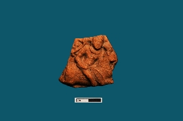 | Description / विवरण | On a terracotta plaque, a male is depicted riding a horse, with the face eroded and a hair knot on top. A thick necklace is also shown, and the right hand is placed on the right thigh. The horse is decorated with its saddles. |