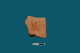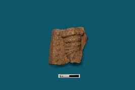 | Description / विवरण | A terracotta plaque displays a circular design with a motion from low to high upwards, with the rest not visible. |