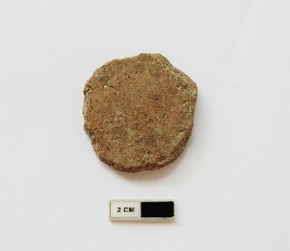| Description / विवरण | A terracotta hopscotch in a circular shape. It is muted red in colour and damaged in condition. |