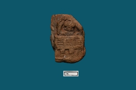 | Description / विवरण | A fragmented terracotta plaque portrays a seated female figurine positioned on a pedestal. Despite a broken head, the sculpture displays visible breasts and a motif on its belly. Both hands, resting below the knee, are broken. The pedestal is thick and double-storeyed. |