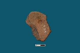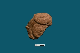 | Description / विवरण | This terracotta plaque showcases a human head, albeit broken. Visible features include eyes, nose, and lips, with a swallon turban featuring a knot in place of the right ear. |