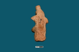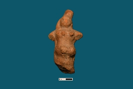| Description / विवरण | A female figurine, intact from head to thigh, features a cylindrical-shaped cap on top. Though the face is not completely visible, and the hands are broken, the breasts are discernible. Two swollen parts in the lower belly suggest hip portions, indicating potential low craftsmanship or its status as a discarded object. |