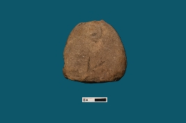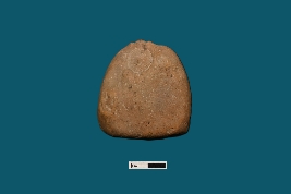| Description / विवरण | A terracotta seal bears two circles on both sides, with no inscriptions visible. The object is almost triangular-shaped. |