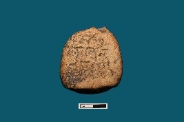 | Description / विवरण | A terracotta seal bearing a three line inscription in proto Bengali script. Terracotta seal bears two circles on the reverse side. The object is almost oval-shaped. |